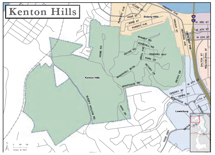 Kenton Hills, named for explorer Simon Kenton, has a park-like setting near the city's Devou Park. Many homes are nestled along the hillsides with spectacular views of the Ohio River. Others share the splendor of the 700-acre Devou Park. Residents enjoy year-around activities in Devou Park, including theater, symphony, nature trails, golf, tennis, picnic facilities, fishing, the Behringer-Crawford Museum, and the 18-hole Devou Golf Course. The Kenton Hills neighborhood sits above downtown Covington and offers easy access to the major interstates. The homes in Kenton Hills are stately, and present many architectural styles. The streets of Kenton Hills offer residents and visitors a peaceful park-like setting, thanks to the proximity of Devou Park.